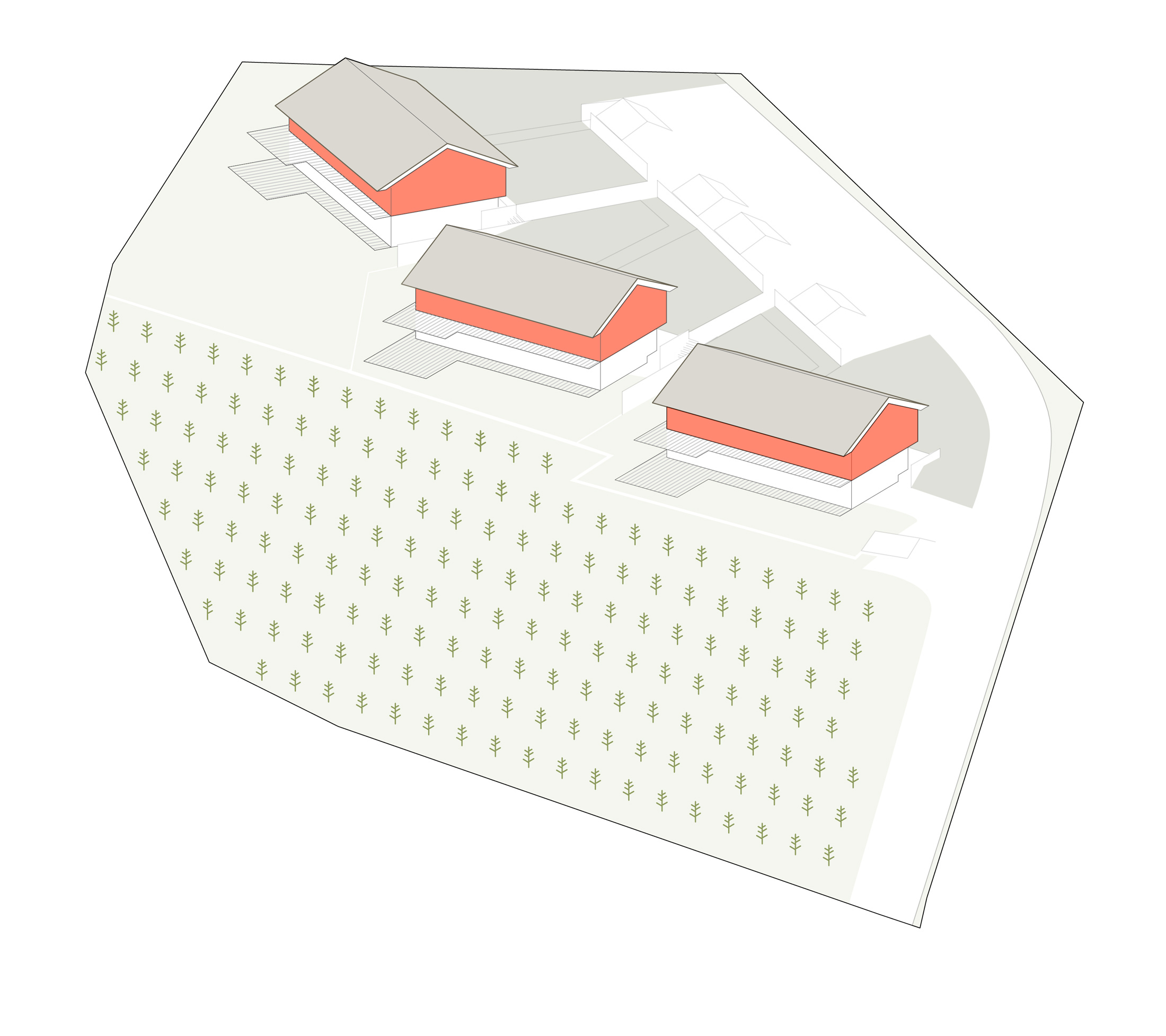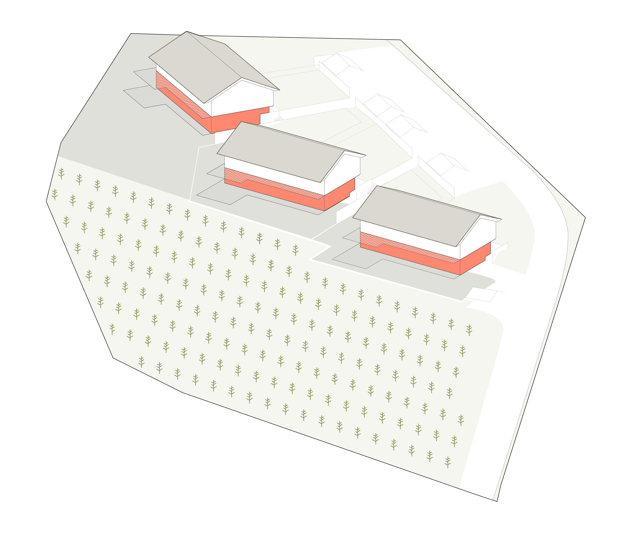 Située au sommet d’un petit vignoble privatif, sur une légère pente entourée de verdure, les 3 maisons du projet offre une vue exceptionnelle sur le lac et les montagnes. Le style élégant et sobre du petit complexe résidentiel s’intègre parfaitement au site. Les façades aux lignes modernes arborent des matériaux nobles, comme la pierre, qui rappellent les construction patrimoniales environnantes.